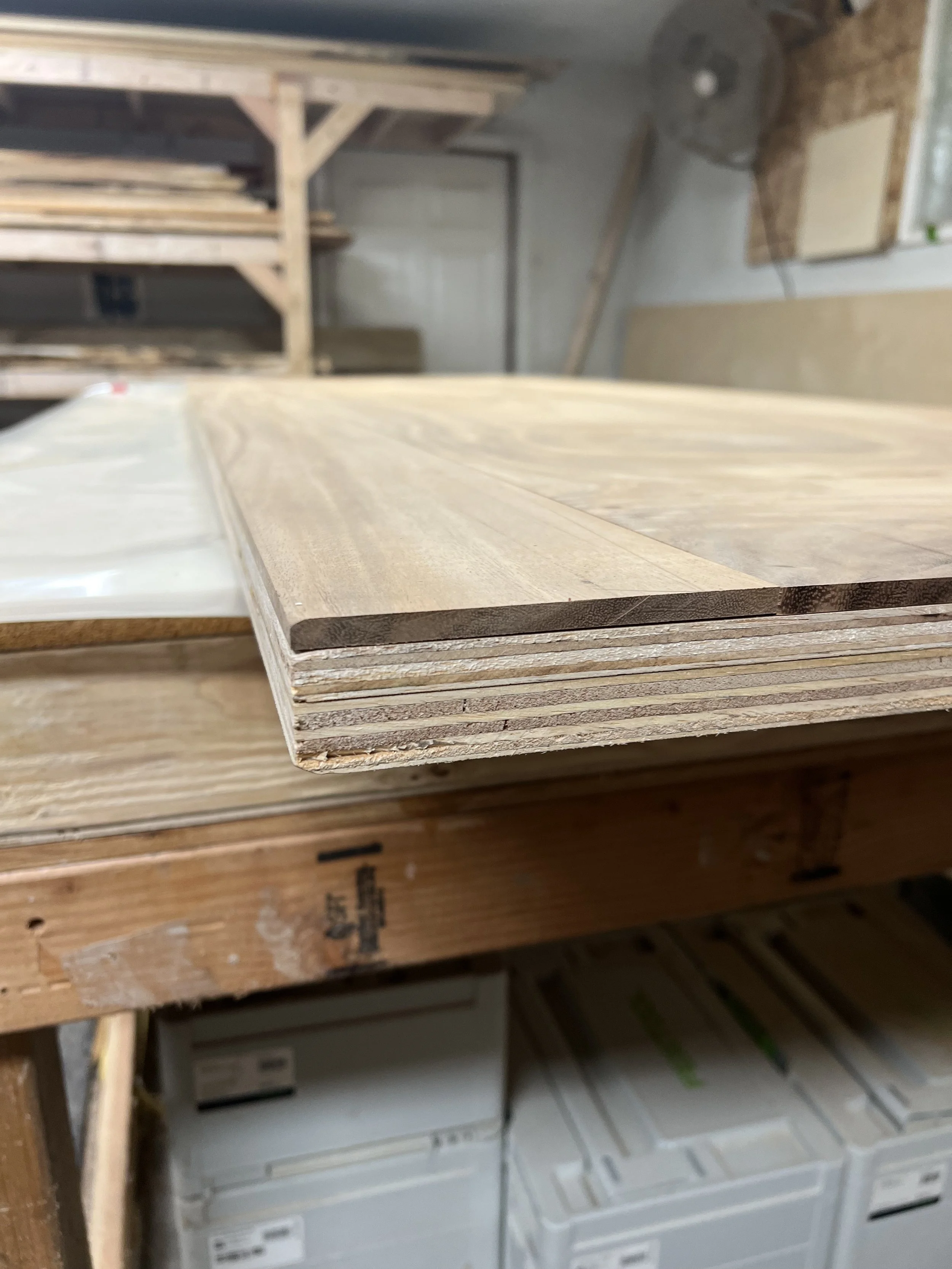 We use 3mm-5mm thick Veneers — allowing for deep grain expression, stronger bond integrity, and long term stability.